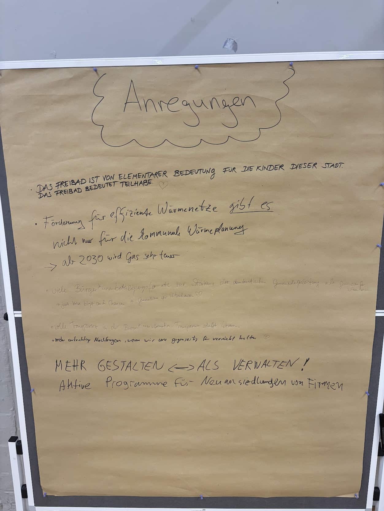 Unter dem Artikel befinden sich auch die Aufnahmen der Stellwände, die für Anregungen, Ideen und Wünsche aufgestellt wurden.